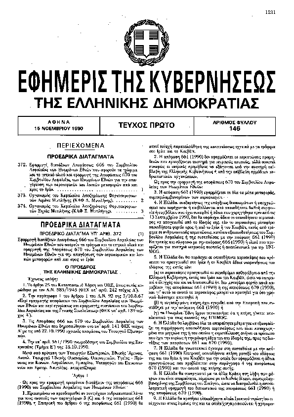 ΕΦΑΡΜΟΓΗ ΔΙΑΤΑΞΕΩΝ ΑΠΟΦΑΣΕΩΣ 666 ΤΟΥ ΣΥΜΒΟΥΛΙΟΥ ΑΣΦΑΛΕΙΑΣ ΤΩΝ ΗΝΩΜΕΝΩΝ ΕΘΝΩΝ ΠΟΥ ΑΦΟΡΟΥΝ ΤΑ ΤΡΟΦΙΜΑ ΚΑΙ ΤΟ ΙΑΤΡΙΚΟ ΥΛΙΚΟ ΚΑΙ ΕΦΑΡΜΟΓΗ ΤΗΣ ΑΠΟΦΑΣΕΩΣ 670 ΤΟΥ ΣΥΜΒΟΥΛΙΟΥ ΑΣΦΑΛΕΙΑΣ ΤΩΝ ΗΝΩΜΕΝΩΝ ΕΘΝΩΝ ΓΙΑ ΤΗΝ ΑΠΑΓΟΡΕΥΣΗ ΤΩΝ ΑΕΡΟΠΟΡΙΚΩΝ ΚΑΙ ΛΟΙΠΩΝ ΜΕΤΑΦΟΡΩΝ ΑΠΟ ΚΑΙ ΠΡΟΣ ΤΟ ΙΡΑΚ.