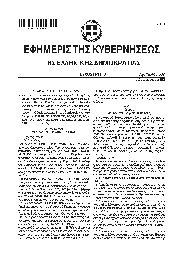 5. ΦΕΚ 307/A, 2002 http://www.et.gr/