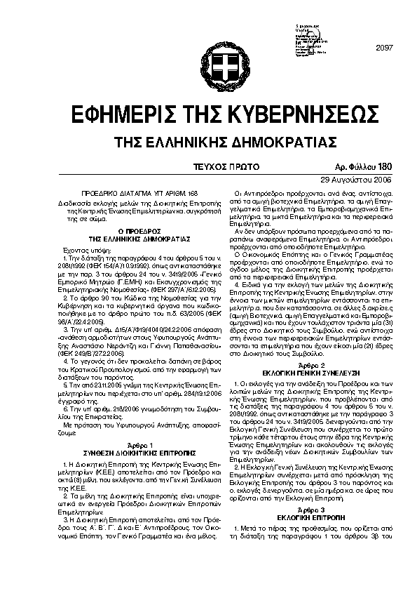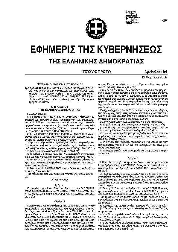 ΤΡΟΠΟΠΟΙΗΣΗ ΤΟΥ ΠΔ 372/92 "ΤΡΟΠΟΣ ΔΙΕΝΕΡΓΕΙΑΣ ΕΚΛΟΓΩΝ ΓΙΑ ΤΗΝ ΑΝΑΔΕΙΞΗ ΤΩΝ ΜΕΛΩΝ ΤΩΝ ΔΙΟΙΚΗΤΙΚΩΝ ΣΥΜΒΟΥΛΙΩΝ ΤΩΝ ΕΠΙΜΕΛΗΤΗΡΙΩΝ (187 Α) ΟΠΩΣ ΤΡΟΠΟΠΟΙΗΘΗΚΕ ΜΕΤ Α ΠΔ 193/97 (155 Α), 309/97 (220 Α) ΚΑΙ 164/01 (148 Α) ΚΑΙ ΤΡΟΠΟΣ ΕΚΛΟΓΗΣ ΤΩΝ ΠΡΟΕΔΡΩΝ ΤΩΝ ΤΜΗΜΑΤΩΝ ΑΥΤΩΝ