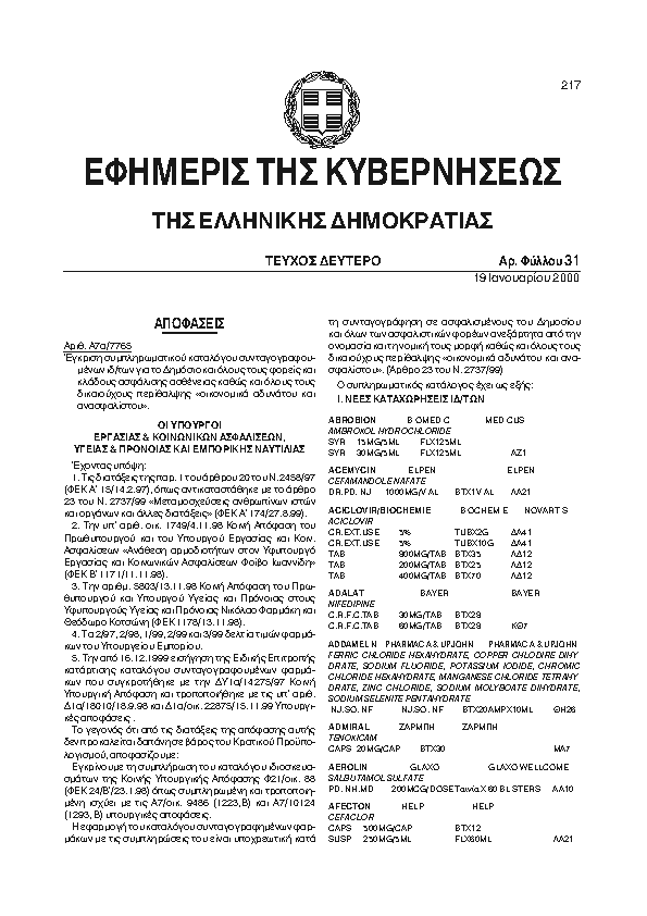 Αναζήτηση στα ΦΕΚ για:  διαγραφές