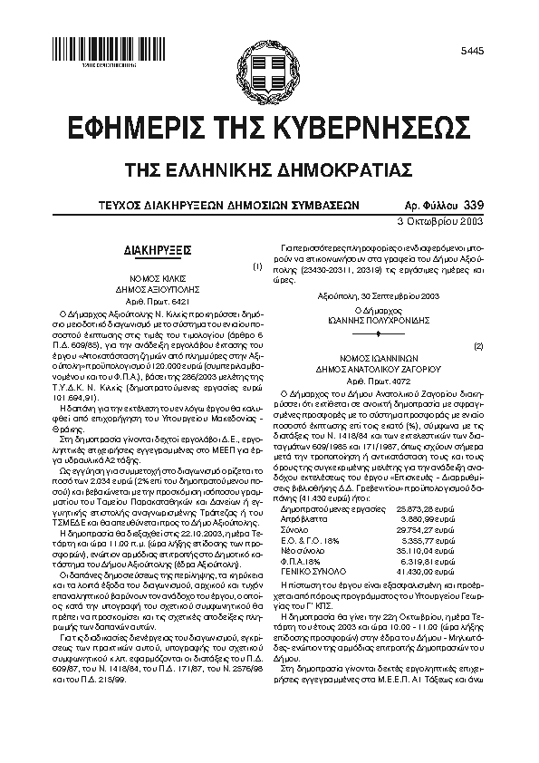 Αναζήτηση στα ΦΕΚ για:  διαγραφές