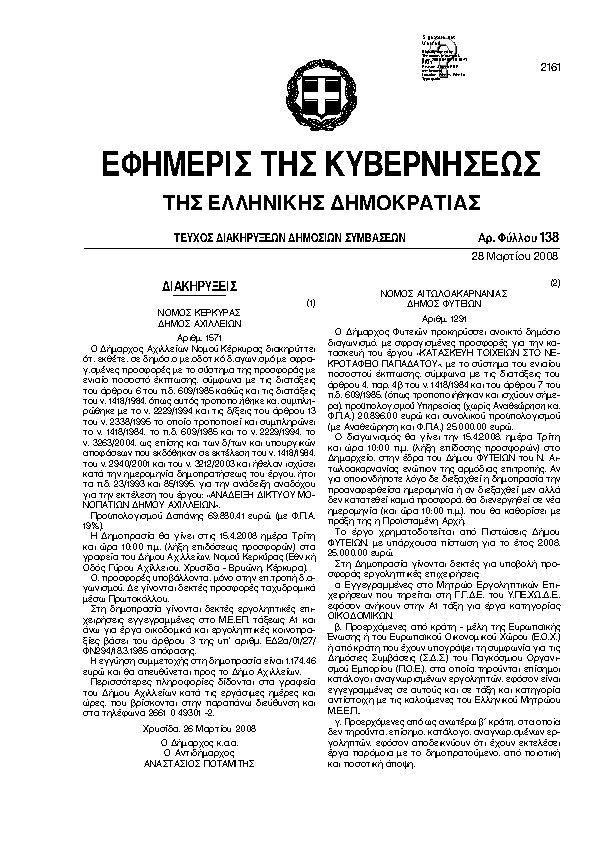 Αναζήτηση στα ΦΕΚ για:  διαγραφές