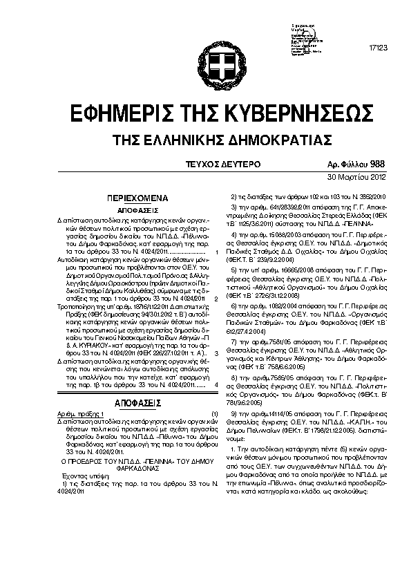 Αναζήτηση στα ΦΕΚ για:  ειδικού συμβούλου