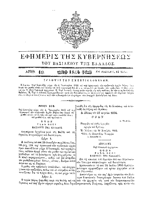 1. ΦΕΚ 10/A, 1854 http://www.et.gr/