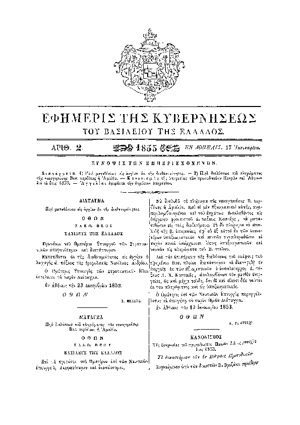 2. ΦΕΚ 3/A, 1853 http://www.et.gr/