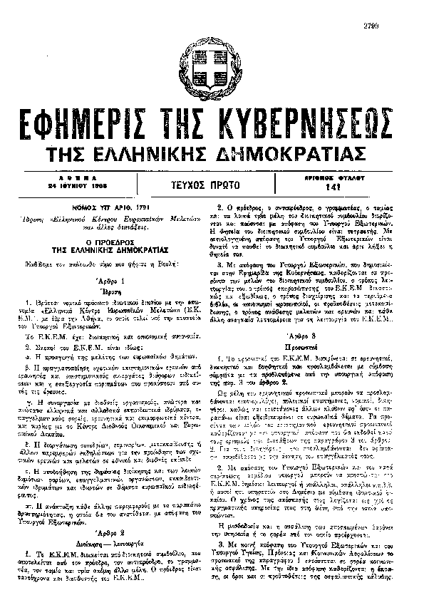• ΙΔΡΥΣΗ «ΕΛΛΗΝΙΚΟΥ ΚΕΝΤΡΟΥ ΕΥΡΩΠΑΪΚΩΝ ΜΕΛΕΤΩΝ» ΚΑΙ ΑΛΛΕΣ ΔΙΑΤΑΞΕΙΣ.