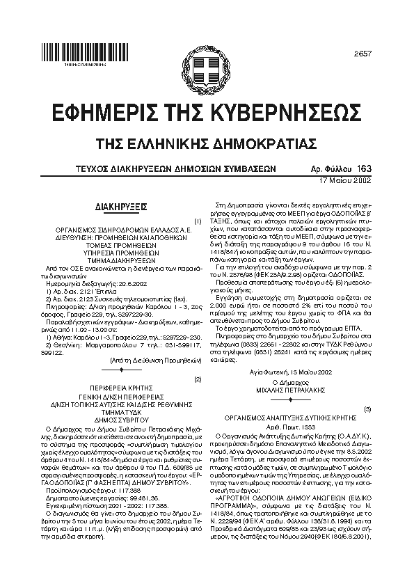 Αναζήτηση στα ΦΕΚ για:  ειδικού συμβούλου