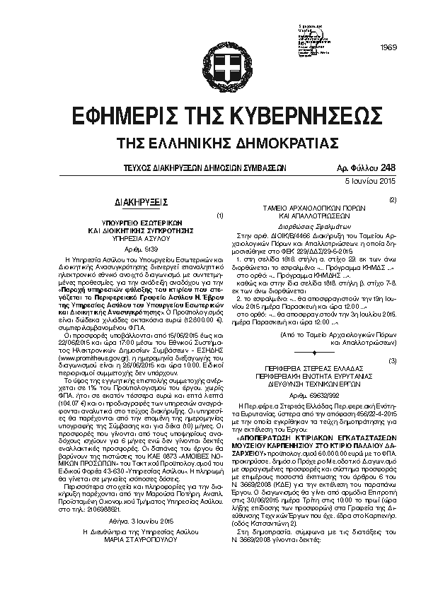 Αναζήτηση στα ΦΕΚ για:  ειδικού συμβούλου