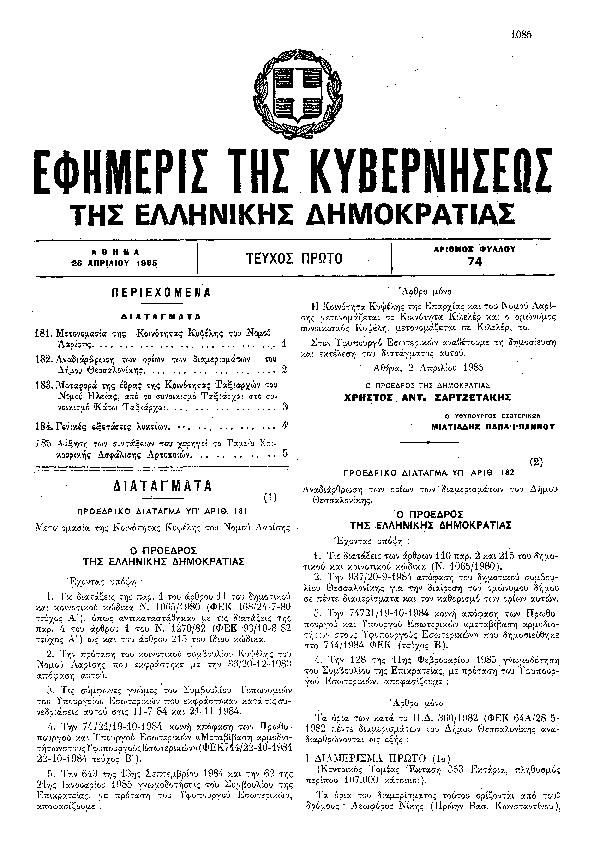 4. ΦΕΚ 74/A, 1985 http://www.et.gr/