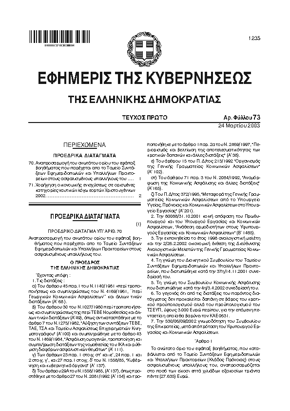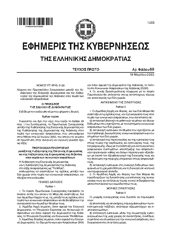 ΚΥΡΩΣΗ ΤΟΥ ΠΡΩΤΟΚΟΛΛΟΥ ΣΥΝΕΡΓΑΣΙΑΣ ΜΕΤΑΞΥ ΤΗΣ ΚΥΒΕΡΝΗΣΗΣ ΤΗΣ ΕΛΛΗΝΙΚΗΣ ΔΗΜΟΚΡΑΤΙΑΣ ΚΑΙ ΤΗΣ ΚΥΒΕΡΝΗΣΗΣ ΤΗΣ ΔΗΜΟΚΡΑΤΙΑΣ ΤΗΣ ΑΛΒΑΝΙΑΣ ΣΤΟΝ ΤΟΜΕΑ ΤΩΝ ΚΟΙΝΩΝΙΚΩΝ ΑΣΦΑΛΙΣΕΩΝ