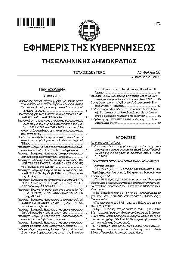 Αναζήτηση στα ΦΕΚ για:  ικα