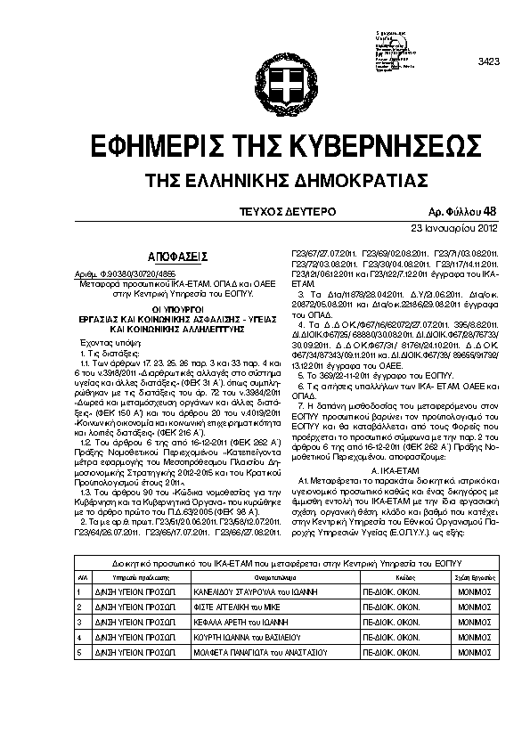 Αναζήτηση στα ΦΕΚ για:  ικα