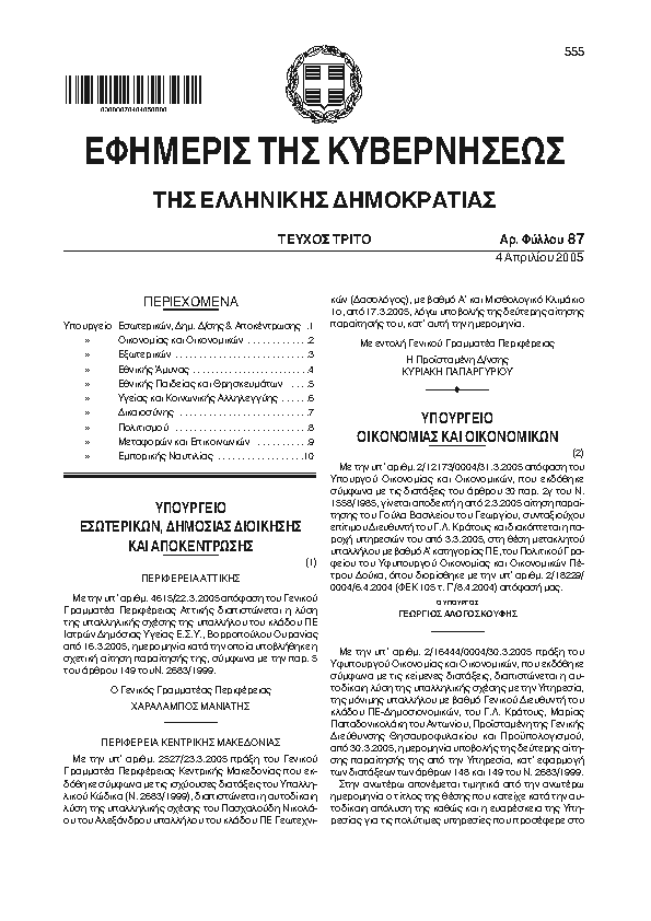 Αναζήτηση στα ΦΕΚ για:  ικα