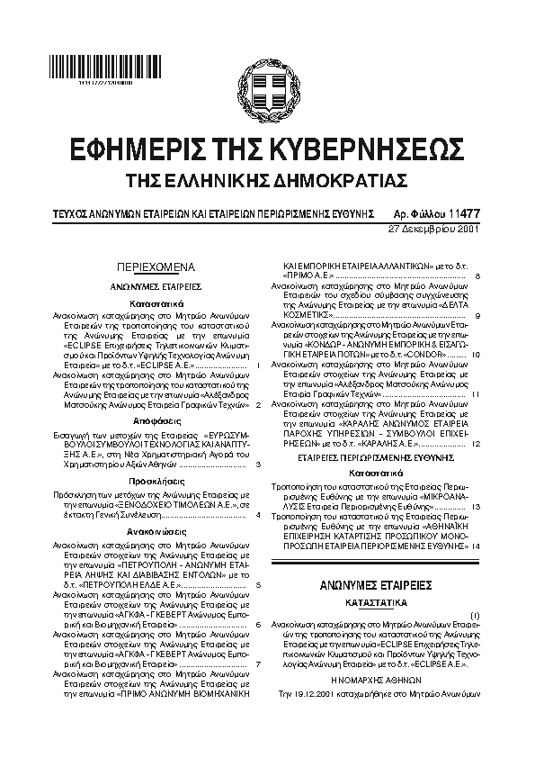 10. ΦΕΚ 41/A, 2001 http://www.et.gr/