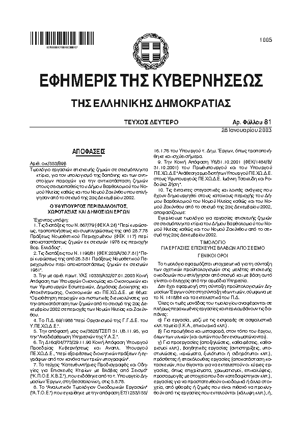 Αναζήτηση στα ΦΕΚ για:  καθαρισμό