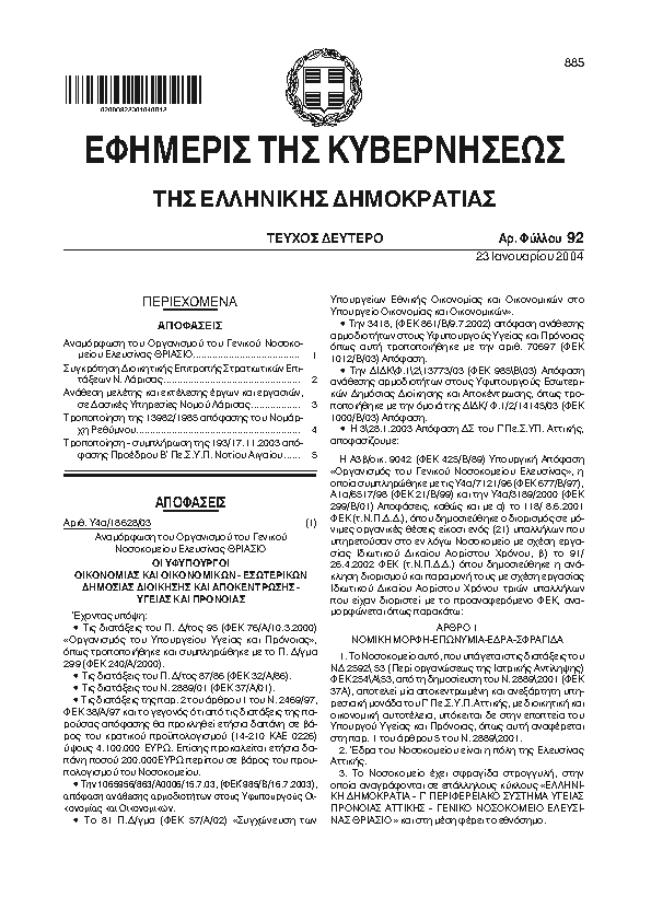 Αναζήτηση στα ΦΕΚ για:  καθαρισμό