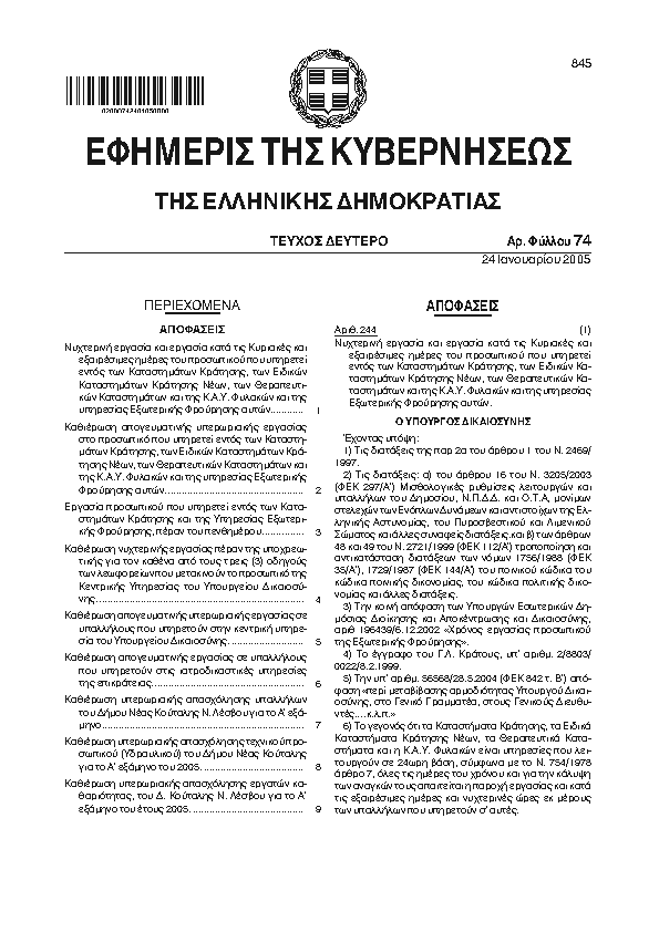 Αναζήτηση στα ΦΕΚ για:  καθαρισμό
