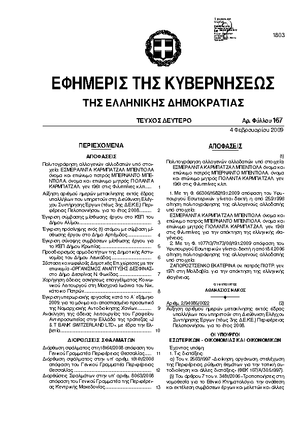 Αναζήτηση στα ΦΕΚ για:  καθαρισμό