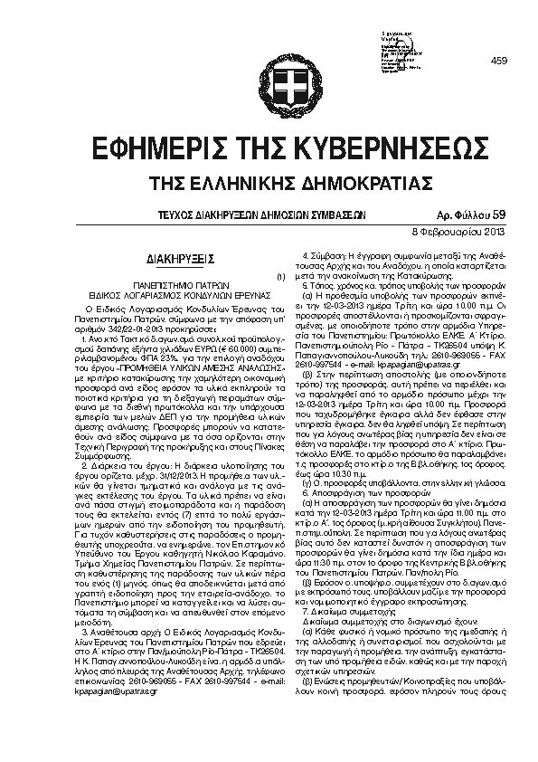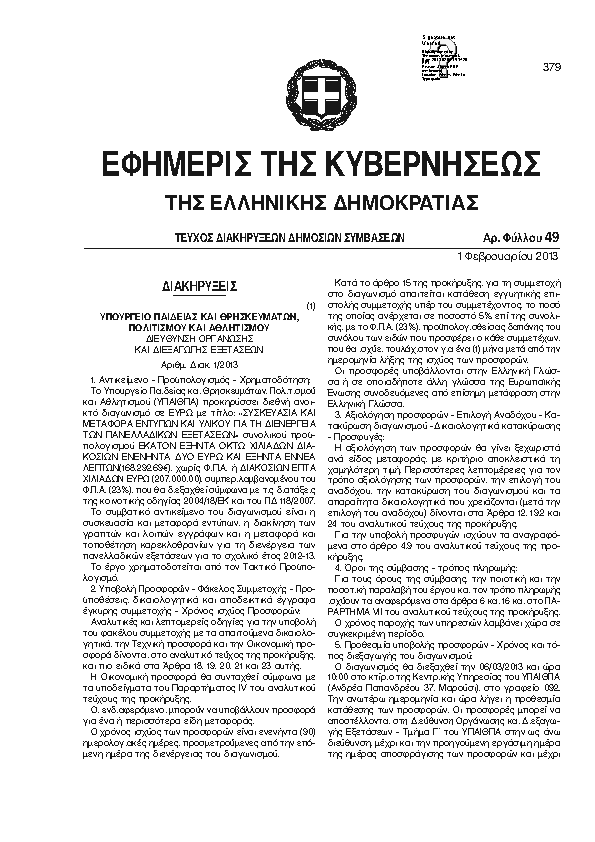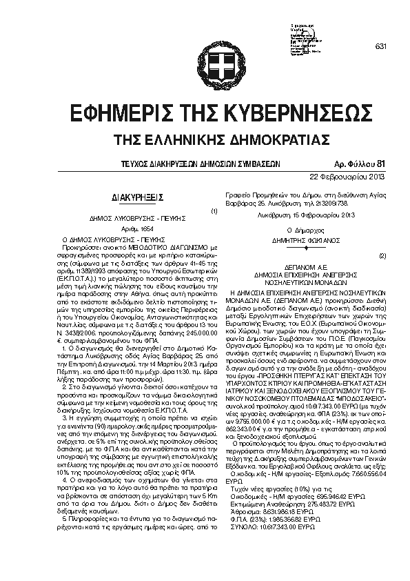 Αναζήτηση στα ΦΕΚ για:  καθαρισμό