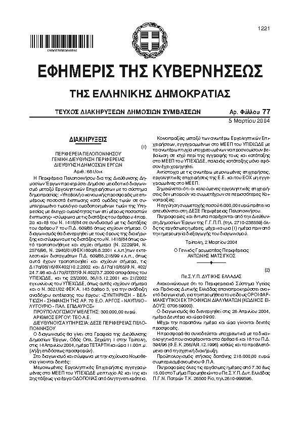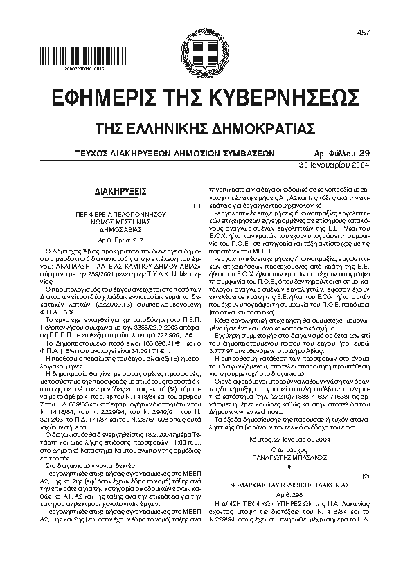 Αναζήτηση στα ΦΕΚ για:  καθαρισμό