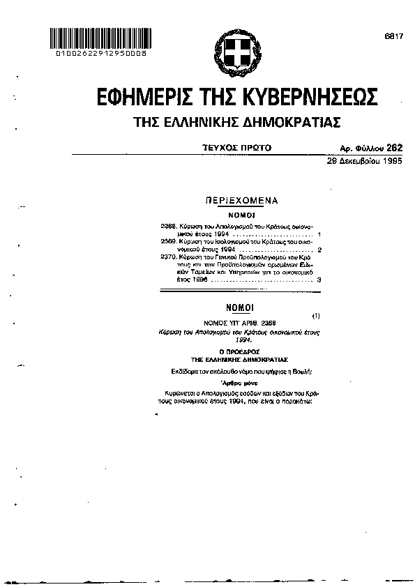 • ΚΥΡΩΣΗ ΤΟΥ ΑΠΟΛΟΓΙΣΜΟΥ ΤΟΥ ΚΡΑΤΟΥΣ ΟΙΚΟΝΟΜΙΚΟΥ ΕΤΟΥΣ 1994