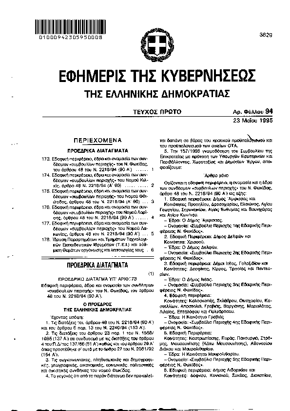 • ΕΔΑΦΙΚΗ ΠΕΡΙΦΕΡΕΙΑ, ΕΔΡΑ ΚΑΙ ΟΝΟΜΑΣΙΑ ΤΩΝ ΣΥΝΔΕΣΜΩΝ ΣΥΜΒΟΥΛΙΩΝ ΠΕΡΙΟΧΗΣ ΤΟΥ ΝΟΜΟΥ ΦΩΚΙΔΑΣ, ΑΡΘΡΟΥ 48 Ν.2218/1994 (Α90)