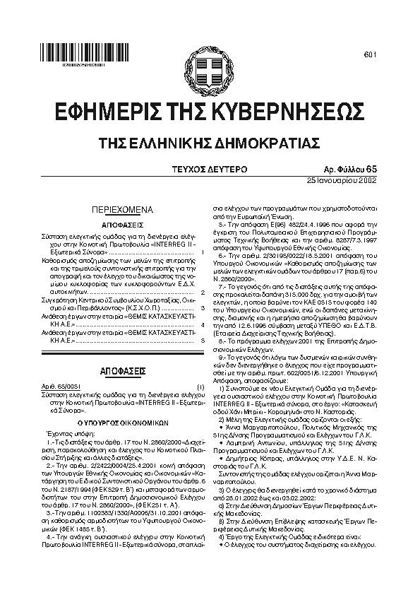 Αναζήτηση στα ΦΕΚ για:  καστοριάς