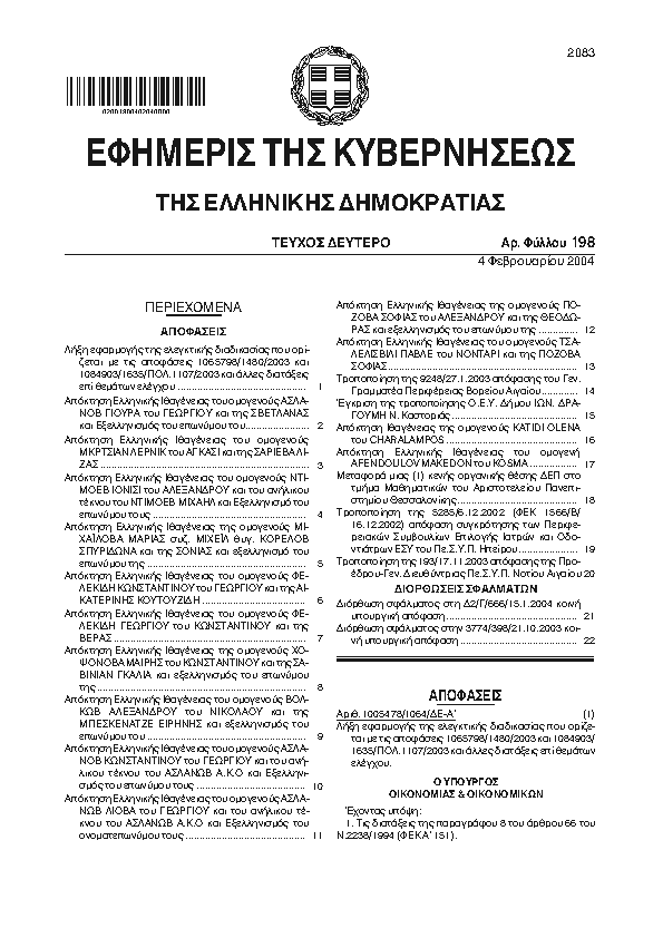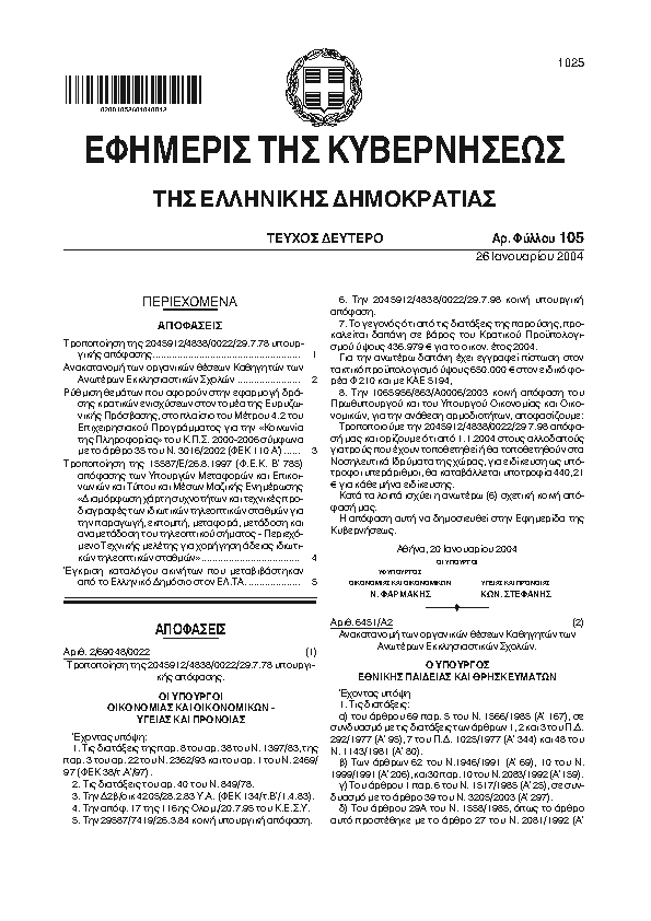 Αναζήτηση στα ΦΕΚ για:  καστοριάς