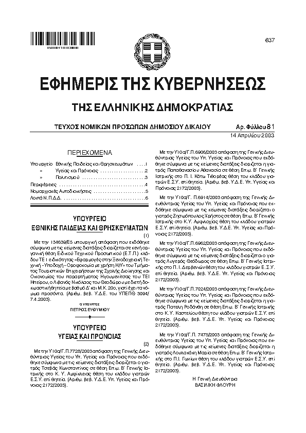 Αναζήτηση στα ΦΕΚ για:  καστοριάς