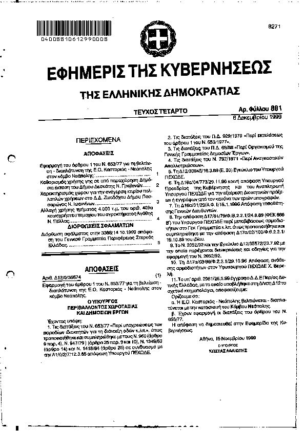 Αναζήτηση στα ΦΕΚ για:  καστοριάς