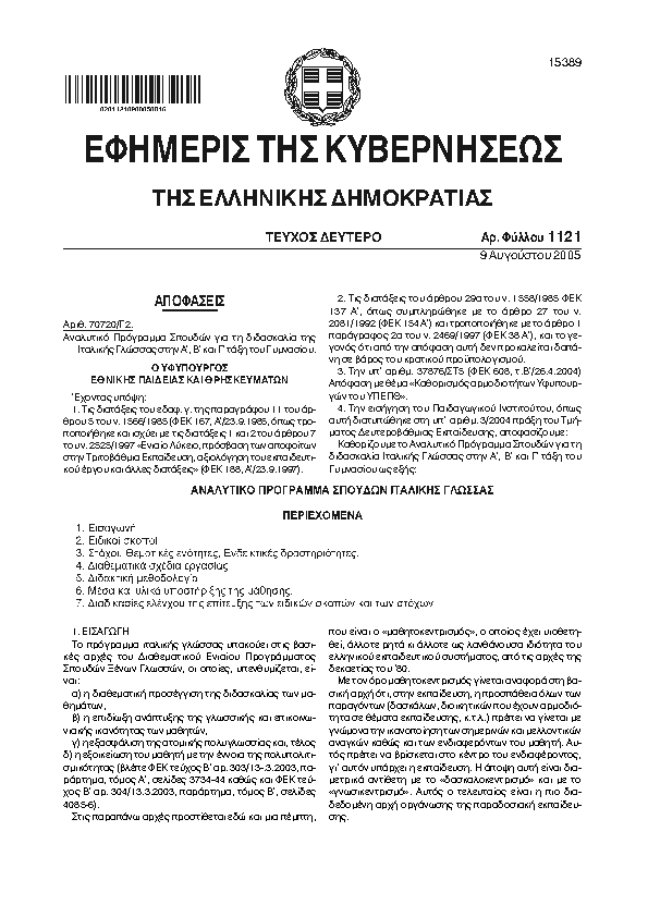 Αναζήτηση στα ΦΕΚ για:  μάθηση