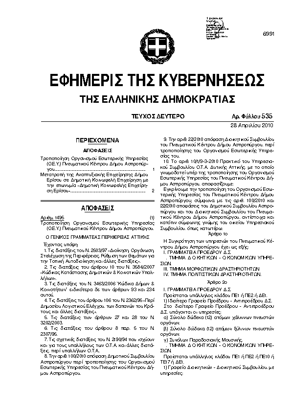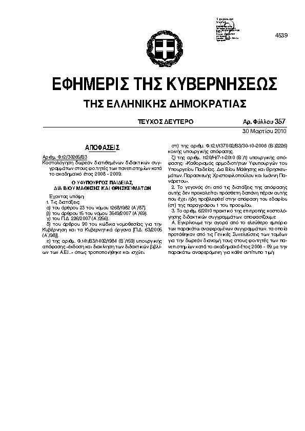 Αναζήτηση στα ΦΕΚ για:  μάθηση