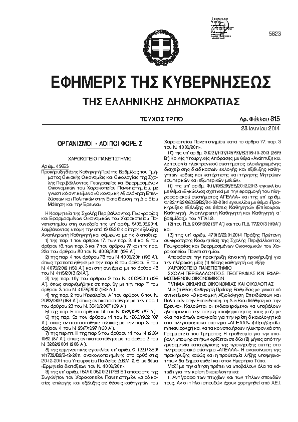 Αναζήτηση στα ΦΕΚ για:  μάθηση