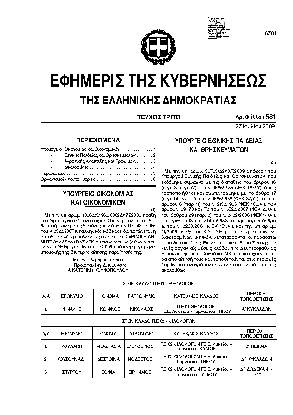 Αναζήτηση στα ΦΕΚ για:  μάθηση