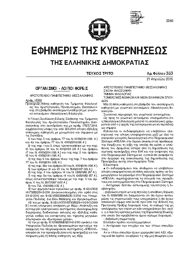 Αναζήτηση στα ΦΕΚ για:  μάθηση