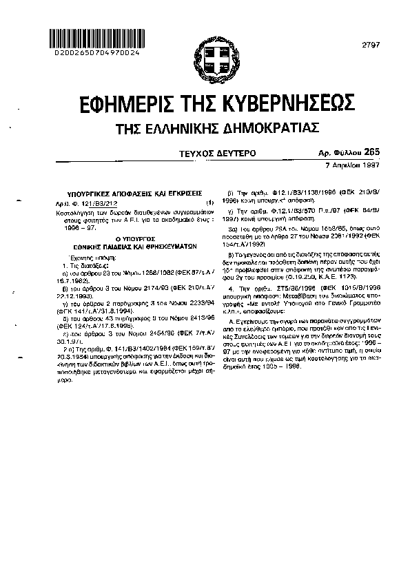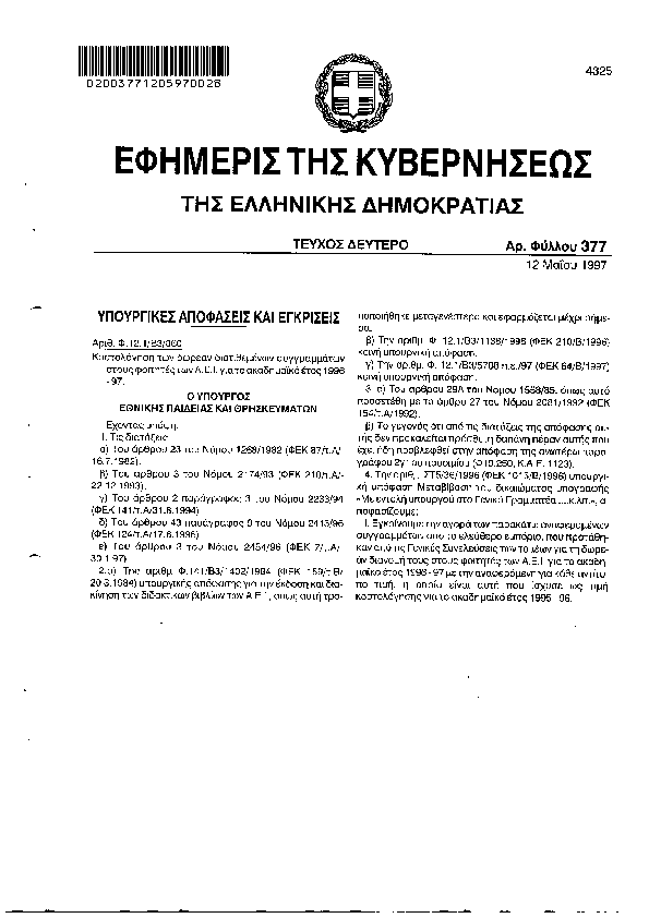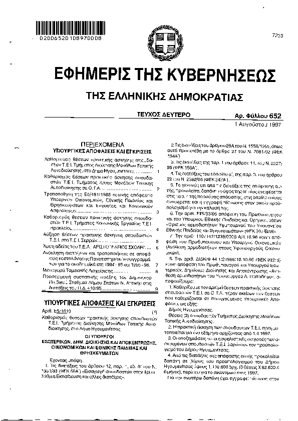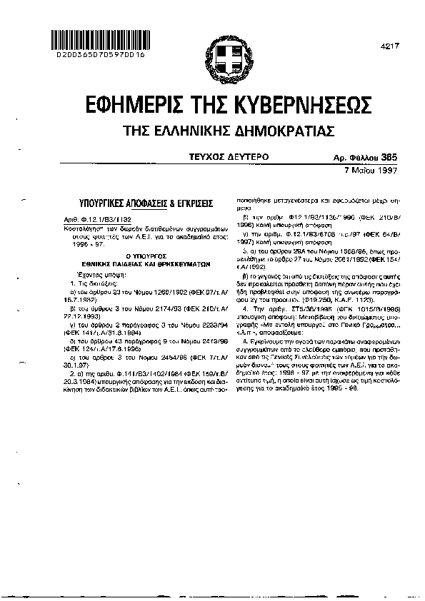 Αναζήτηση στα ΦΕΚ για:  μάθηση
