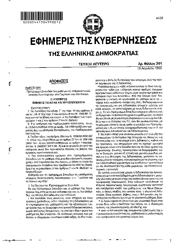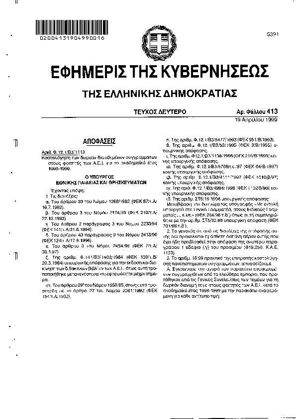 Αναζήτηση στα ΦΕΚ για:  μάθηση