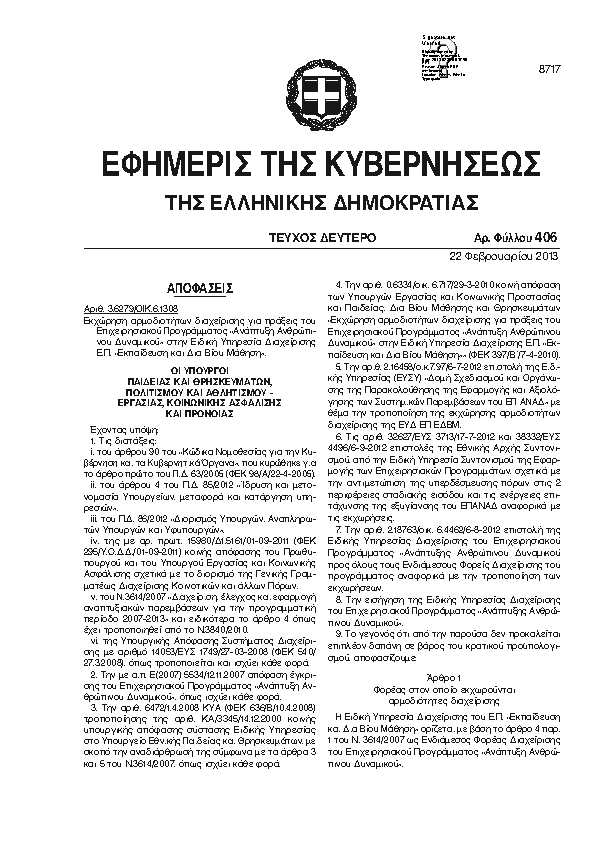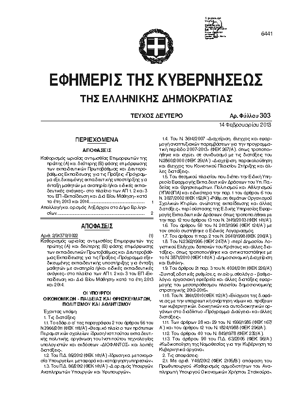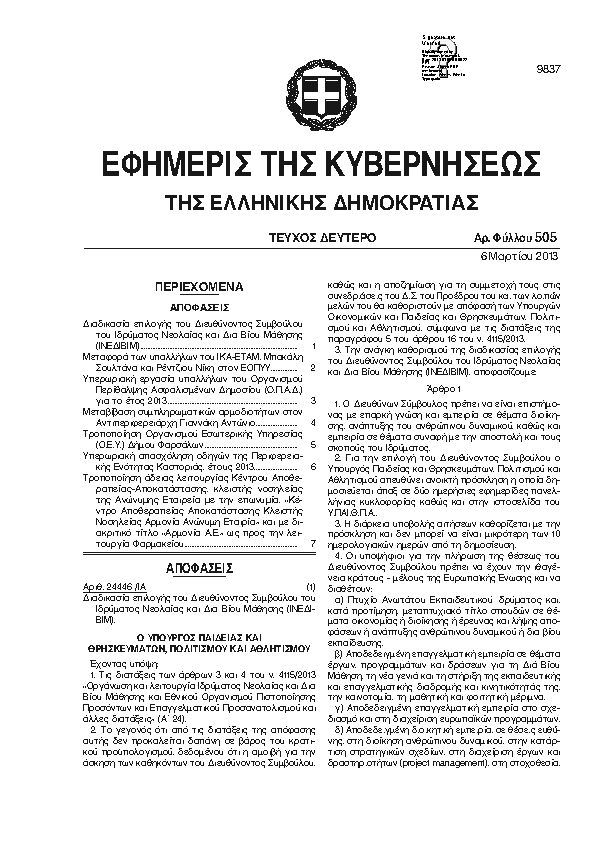 Αναζήτηση στα ΦΕΚ για:  μάθηση