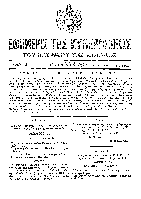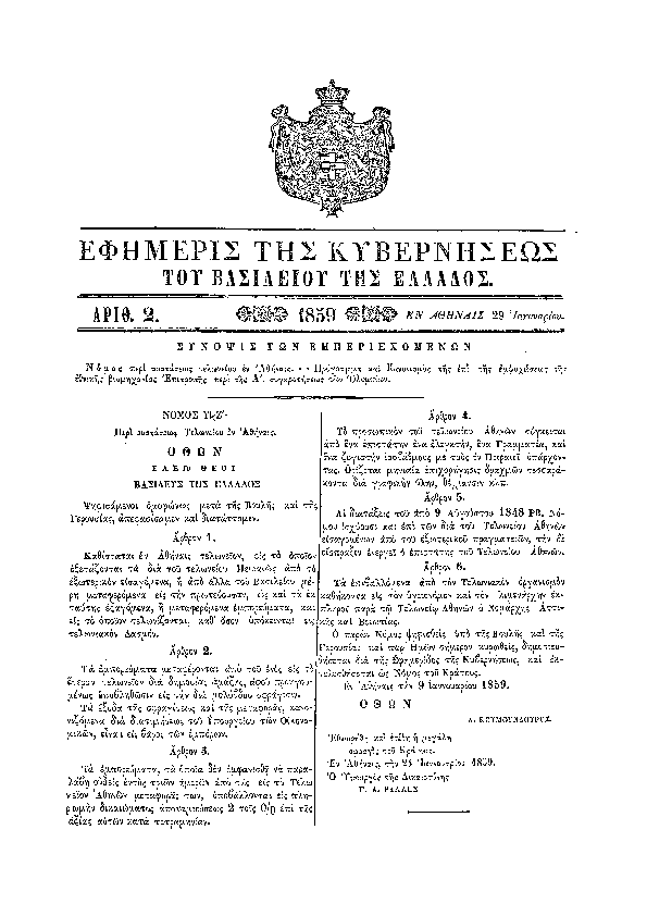8. ΦΕΚ 2/A, 1859 http://www.et.gr/ Νόμος