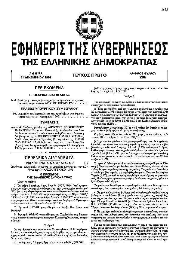 • ΧΟΡΗΓΗΣΗ ΟΙΚΟΝΟΜΙΚΗΣ ΕΝΙΣΧΥΣΗΣ ΣΕ ΟΡΙΣΜΕΝΕΣ ΚΑΤΗΓΟΡΙΕΣ ΝΑΥΤΙΚΩΝ ΛΟΓΩ ΕΟΡΤΩΝ ΧΡΙΣΤΟΥΓΕΝΝΩΝ 1991.