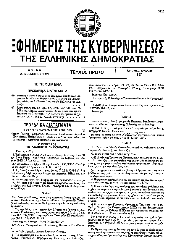 3. ΦΕΚ 181/A, 1991 http://www.et.gr/