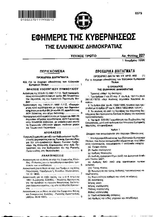 7. ΦΕΚ 227/A, 1995 http://www.et.gr/