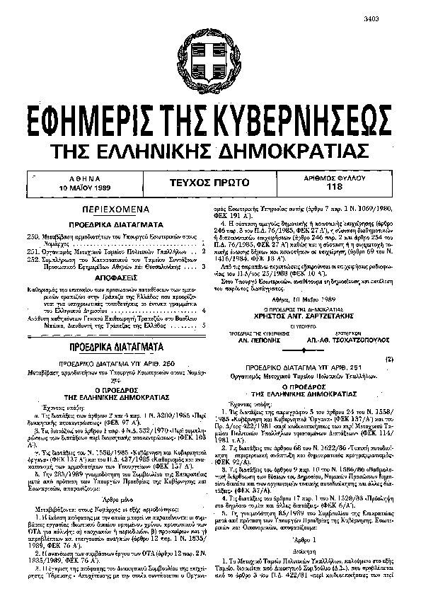10. ΦΕΚ 118/A, 1989 http://www.et.gr/