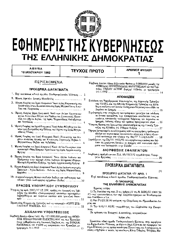 1. ΦΕΚ 1/A, 1992 http://www.et.gr/