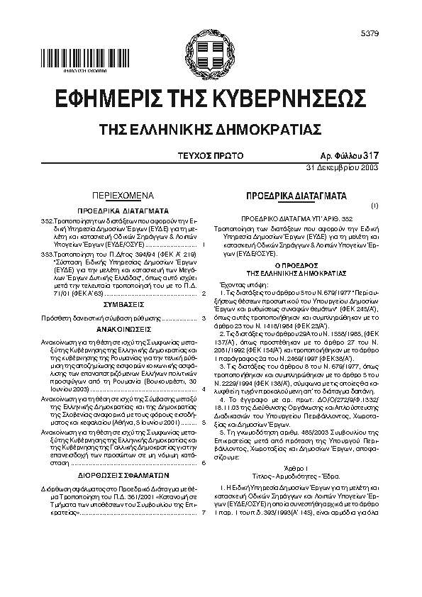 10. ΦΕΚ 317/A, 2003 http://www.et.gr/
