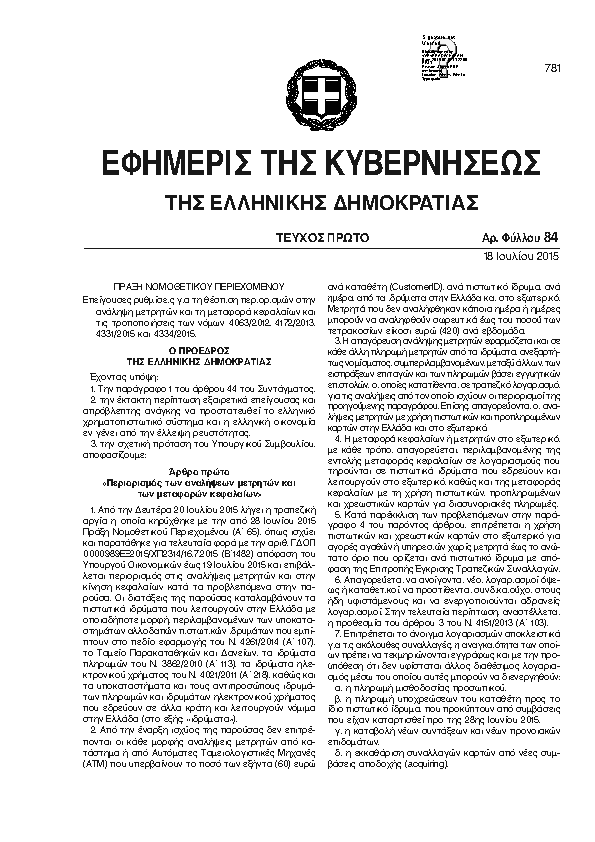 ΝΟΜΟΣ ΥΠ' ΑΡΙΘ. 4328 ΚΥΡΩΣΗ ΤΗΣ ΑΠΟ 27 ΜΑΡΤΙΟΥ 2015 ΠΡΑΞΗΣ ΝΟΜΟΘΕΤΙΚΟΥ ΠΕΡΙΕΧΟΜΕΝΟΥ «ΚΑΤΕΠΕΙΓΟΥΣΑ ΡΥΘΜΙΣΗ ΓΙΑ ΤΗ ΒΙΩΣΙΜΟΤΗ¬ΤΑ ΤΗΣ «ΕΛΛΗΝΙΚΗΣ ΒΙΟΜΗΧΑΝΙΑΣ ΖΑΧΑΡΗΣ Α.Ε.» ΚΑΙ ΤΙΣ ΛΗΞΙΠΡΟΘΕΣΜΕΣ ΟΦΕΙΛΕΣ» (Α ' 35) ΚΑΙ ΑΛΛΕΣ ΔΙΑΤΑΞΕΙΣ