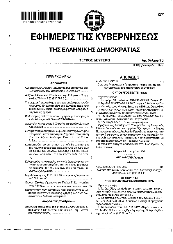 Αναζήτηση στα ΦΕΚ για:  οφειλών