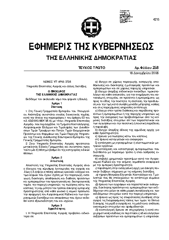 • ΥΠΗΡΕΣΙΑ ΕΠΟΠΤΕΙΑΣ ΑΓΟΡΑΣ ΚΑΙ ΑΛΛΕΣ ΔΙΑΤΑΞΕΙΣ