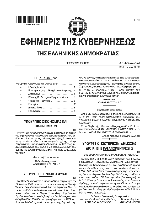 Αναζήτηση στα ΦΕΚ για:  πρόσληψη ειδικού συμβούλου