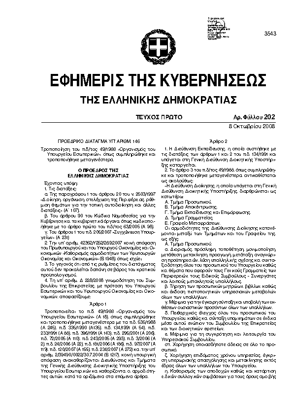 ΑΝΑΔΙΟΡΓΑΝΩΣΗ ΤΟΥ ΣΥΣΤΗΜΑΤΟΣ ΑΔΕΙΟΔΟΤΗΣΗΣ ΓΙΑ ΤΗ ΔΙΑΜΟΝΗ ΑΛΛΟΔΑΠΩΝ ΣΤΗ ΧΩΡΑ ΥΠΟ ΟΡΟΥΣ ΑΥΞΗΜΕΝΗΣ ΑΣΦΑΛΕΙΑΣ, ΡΥΘΜΙΣΕΙΣ ΘΕΜΑΤΩΝ ΟΡΓΑΝΙΣΜΩΝ ΤΟΠΙΚΗΣ ΑΥΤΟΔΙΟΙΚΗΣΗΣ ΚΑΙ ΑΛΛΕΣ ΔΙΑΤΑΞΕΙΣ ΑΡΜΟΔΙΟΤΗΤΑΣ ΤΟΥ ΥΠΟΥΡΓΕΙΟΥ ΕΣΩΤΕΡΙΚΩΝ.